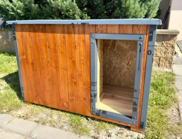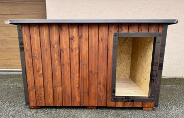 Psí boudy mají masivní zateplenou konstrukci, pevnou podlahu, odolnou plechovou střechu a oplechované rohy v barvě, které chrání konstrukci proti povětrnostním vlivům a výrazně prodlužují její životnost. Kvalitní ochranný nátěr zajišťuje dlouhodobou odolnost při venkovním použití.